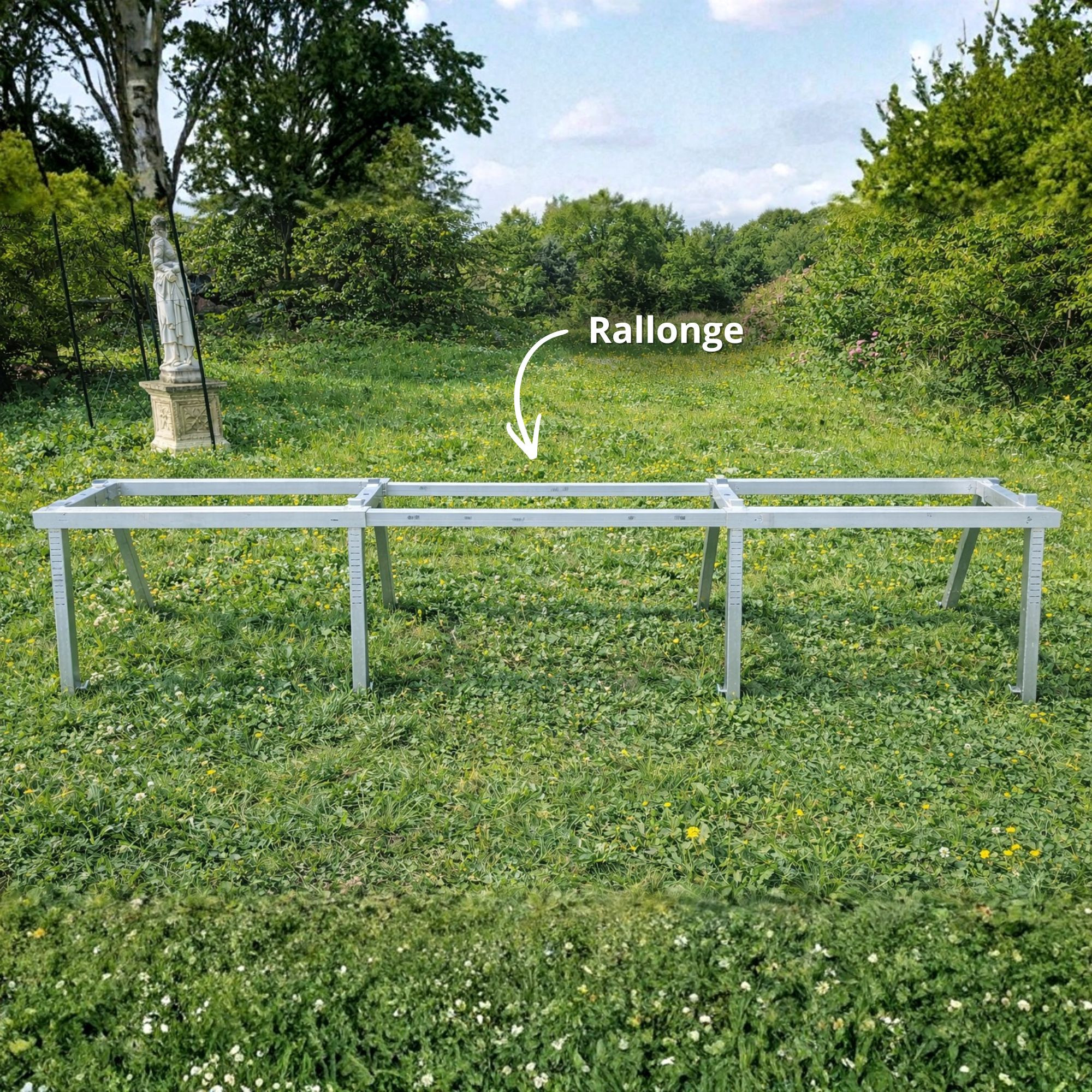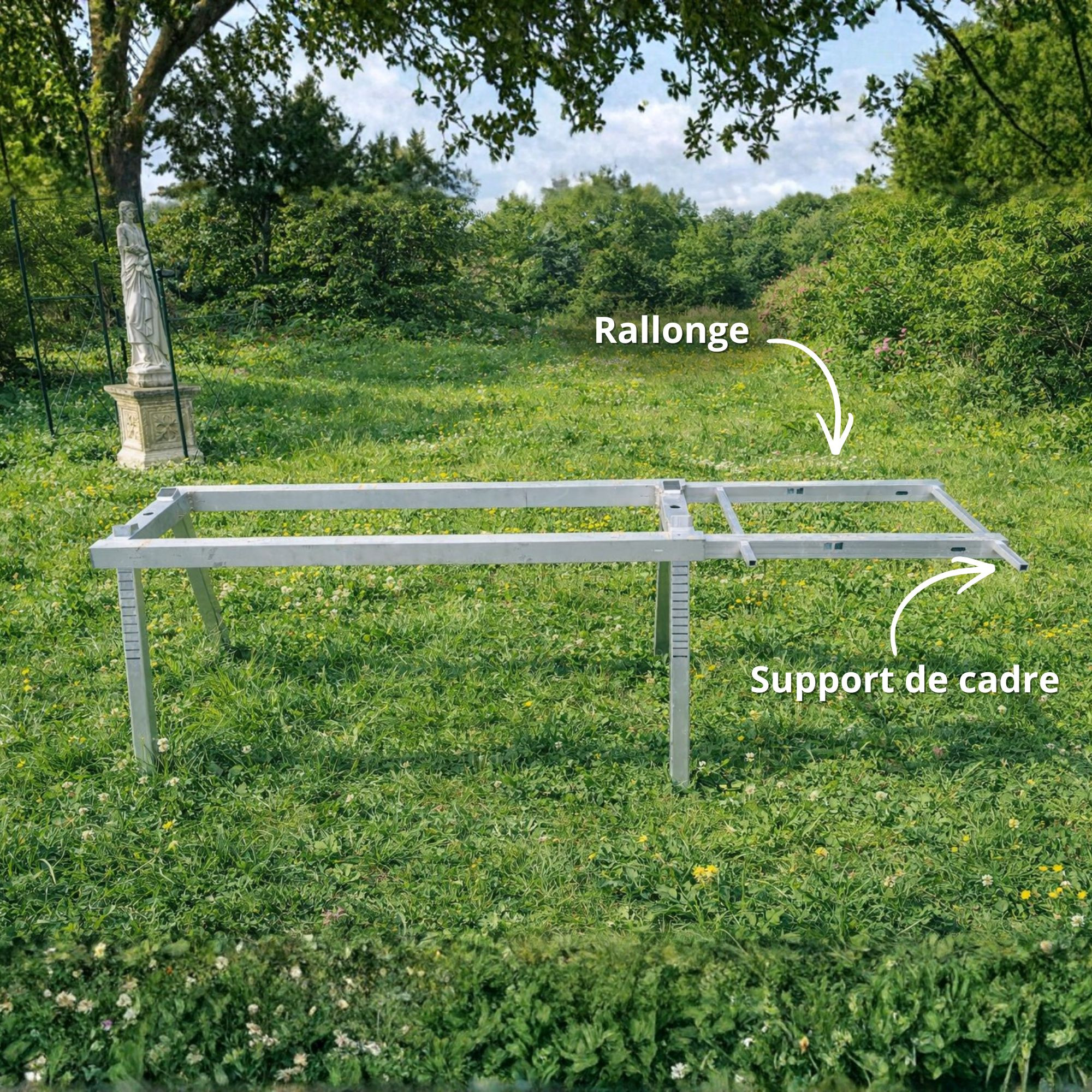 La rallonge est conçue pour s’intégrer par emboîtement dans la structure tubulaire existante, garantissant une jonction stable et sécurisée.